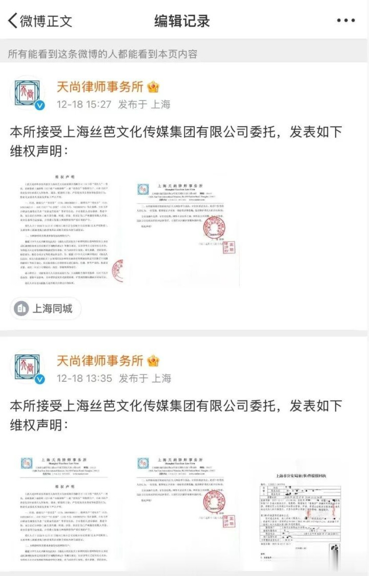 12月18日,丝芭委托天尚律师事务所发布维权声明,并且同步晒出报警回执单,释放的信号很明确:我们已经走法律程序了,对方言论涉嫌侵权。