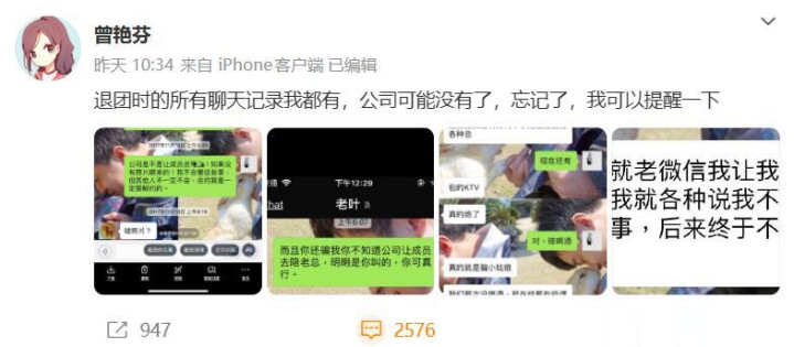 曾艳芬并没有长篇控诉,但她抛出的质问已经足够尖锐:公司当年,是否存在让成员参与不合理商务饭局的情况?