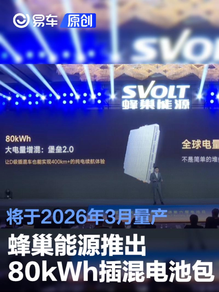 易车讯1月13日,蜂巢能源在第六届电池日上宣布,针对全球家庭用车向大五/六座进阶带来的“大电量插混”需求推出了全球最大电量80kWh插混电池包“堡垒2.0”。官方表示,“堡垒2.0”将于2026年3月量产。